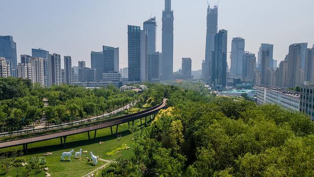 喜欢拍照的可以去中部观景台或者阳光廊桥,都是绝绝子机位。景观台位置较高,爬上去需要花点时间,但是站在那里可以看齐鲁第一高国金中心,视野非常不错。