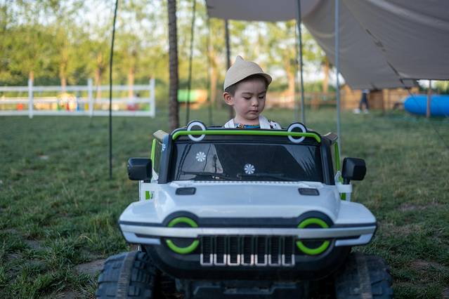 KK小朋友尤其喜欢营地里的玩具车,爬上爬下的玩了很久。