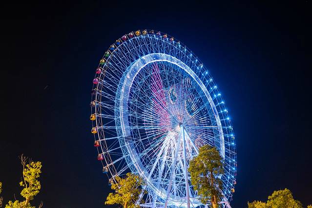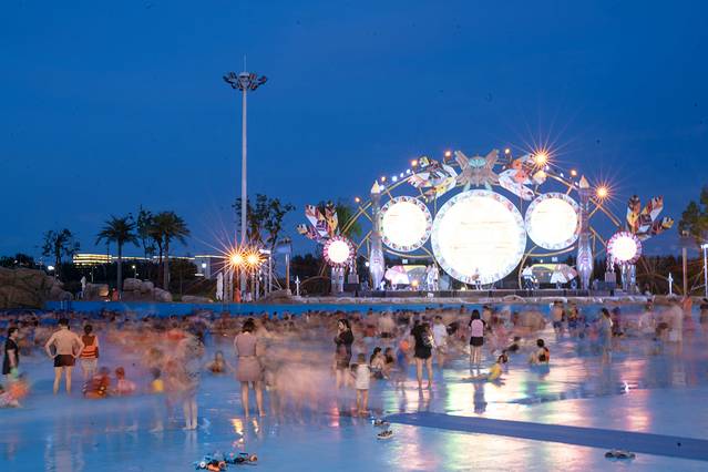 当夜幕降临,东海的海风徐徐吹过,天边的晚霞浪漫无比,染红了半边天空,此时的造浪池变得格外的精彩。人们都聚集在这里,伴随着海浪,吹着海风,尽情的玩水,享受这夏日的清凉,望着旁边闪烁着灯光的摩天轮,这一刻真的如痴如梦。