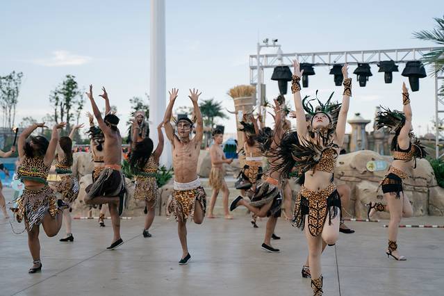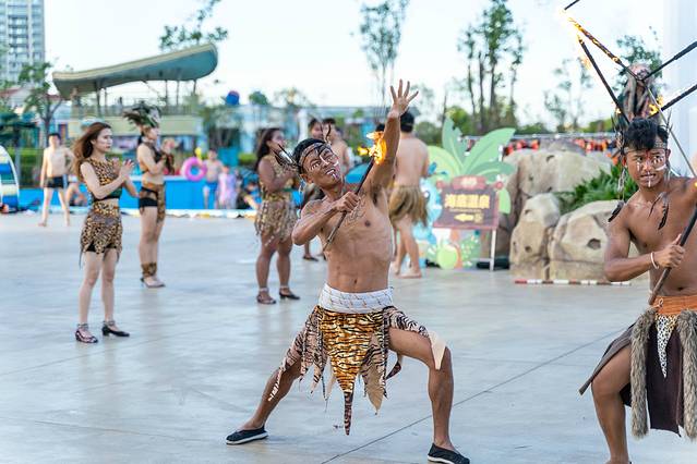 蒂帕帕祈福大典演出,真的值得非常值得一看,演出从室外水世界的入口开始,身着原始人妆造的演员,手捧着火焰来到小舞台开始正式的表演。表演的形式也是丰富多样,有热情的舞蹈,也有让人震撼的表演,都给玩乐之余的我们带来非常不错的视听享受。