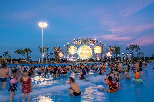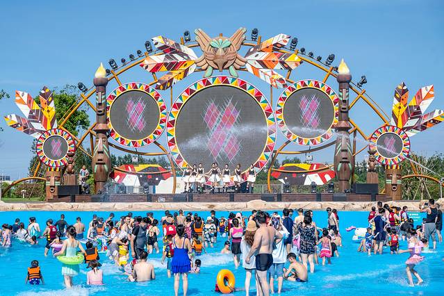 在室外水乐园享受清凉,夜场的狂欢开始,在浪花与电音的完美融合和梦幻灯光秀里热辣开场,热情的DJ,狂热的舞台,精彩的表演、还有泳池里热闹的人群,这才是夏日最值得体验的夜生活,不得不说现场简直嗨爆了。