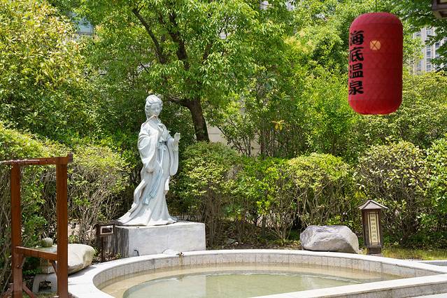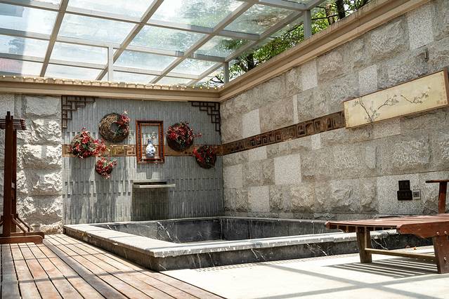 来到温泉区,分为室内和室外两个部分的温泉,园内有着数十个各具特色的温泉泡池,比如有四大美人汤、沧浪泉、酒韵泉·····每一个温泉泡池都有一个非常文艺的名字,室外的温泉池在绿树草木掩映之下,在这里能亲密的感受大自然。