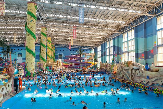海皮岛,是一家融合杭州湾海洋文化特色的水世界,在这里处处都能看到各色各样的海洋元素装饰,比如可爱的鱼、美丽的珊瑚、好看的海螺等等,漫步在这里,就好像走进了神奇的的海底世界,云宝非常的喜欢。在室内水世界中心位置,有着非常齐全的配套设施,品类繁多的美食小吃,还有可供租赁的泳圈、存储柜、移动电源,在这里可以尽情玩。