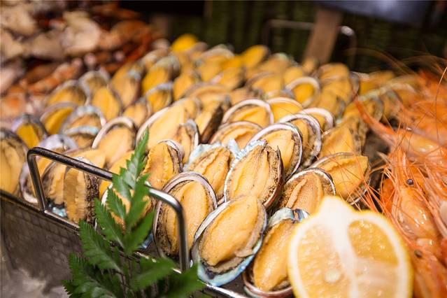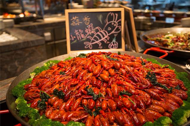 以虾为主题的自助餐非常丰富,有令人食指大动的小龙虾、Q弹的罗氏虾、鲜活的沙虾,还有多款当日直送的雪蟹腿、青口贝、花螺等,都可以任性吃完全不限量呢!