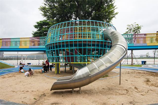 这里有小朋友喜欢的各种滑梯,