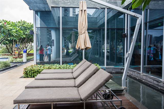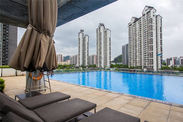 广州南沙越秀喜来登酒店的3楼,有可俯瞰南沙美景的户外无边泳池,水温保持在人体舒适的温度之间。
