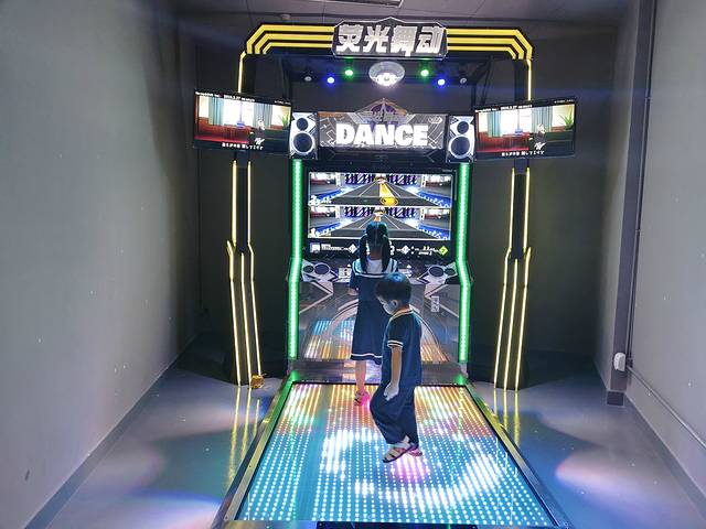 姐姐跟着跳舞机的节奏舞动起来。