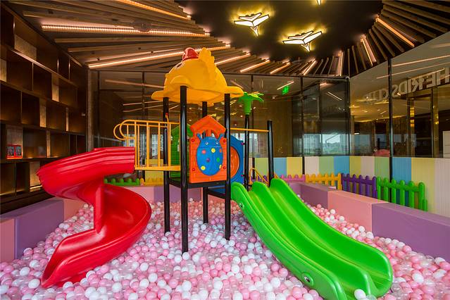 这里还设有了儿童俱乐部,配有儿童乐园、滑梯、海洋球池等儿童玩乐设施,还能体验一下陶瓷制作。