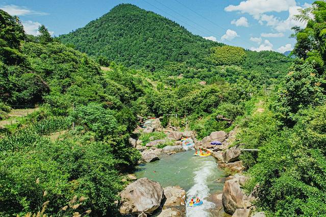 虎啸峡漂流景区,位于桐庐西南部山区钟山乡境内,长峡曲折幽静,峡内怪石嶙峋,水流湍急,两岸原始森林,郁郁葱葱。
