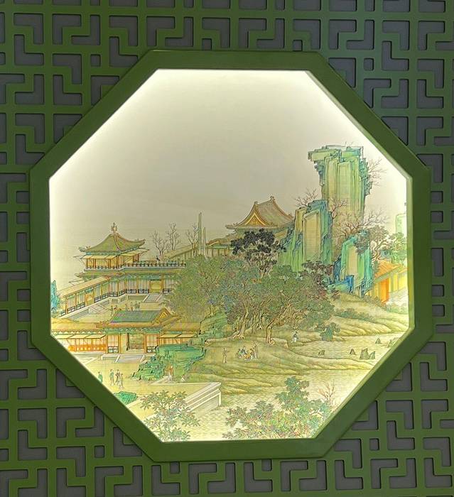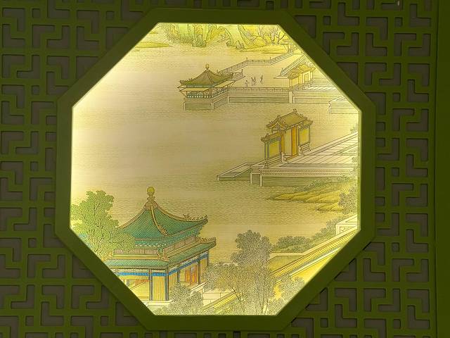 新宫站所处位置历史上为皇家苑囿,站内悬挂着多幅表现皇家苑囿文化的中国画。