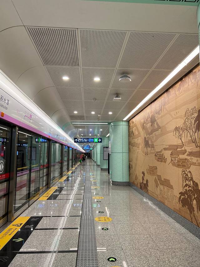 积水潭站——站台干净、明亮,还有壁画可欣赏。