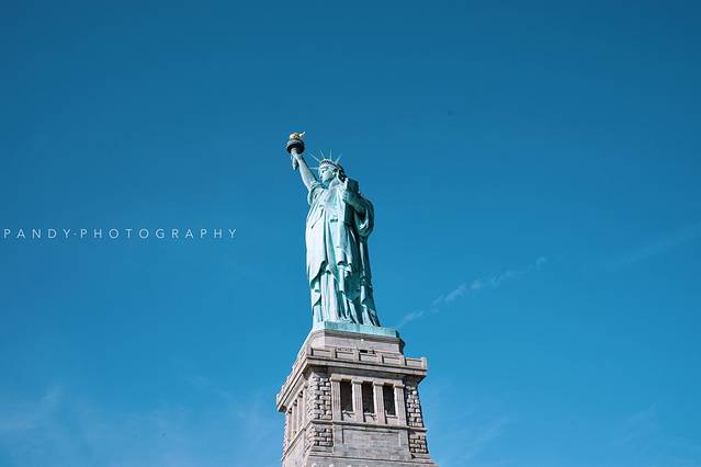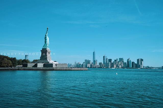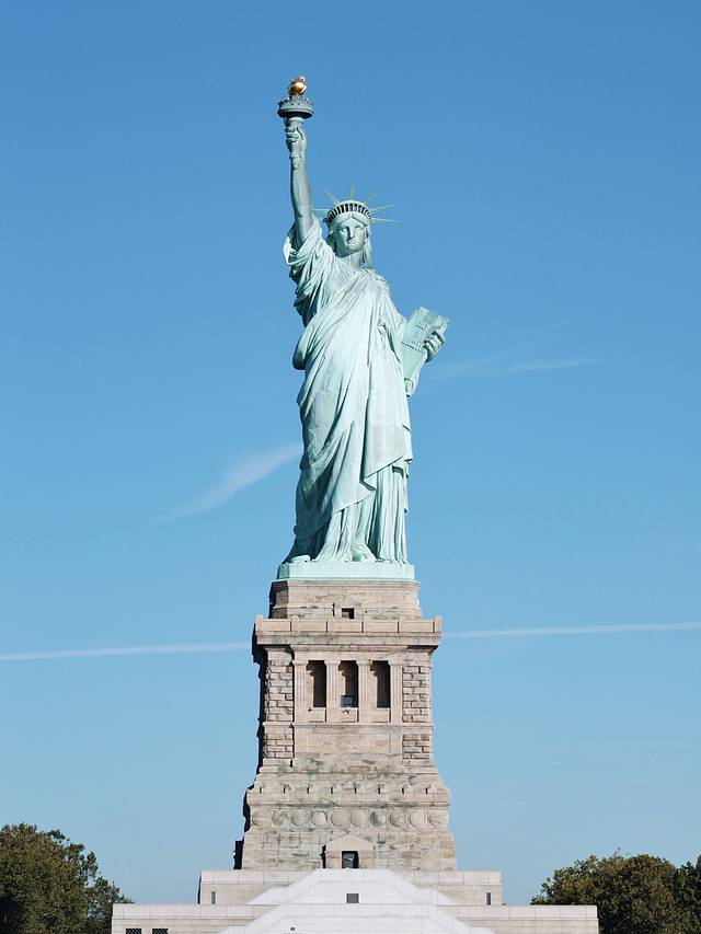 自由女神像坐落在曼哈顿西南方向的自由岛上,是法国为祝贺美国建国100周年之际,赠送的一尊代表自由的雕像。雕像1876年在巴黎开始建造,直至1886年竣工。本来这是一尊纯铜雕像,后来在自然的氧化下变成了我们现在看到的绿色。