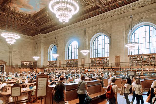 图书馆中的主要阅览室是长方形的开放式书架大厅,搭配上充满年代感的灯饰,非常复古有韵味。1980年代的图书馆,扩建了12,000平方米的地下藏书面积。作为美国主要图书馆系统之一,纽约公共图书馆拥有高达一千五百万的庞大藏书量。
