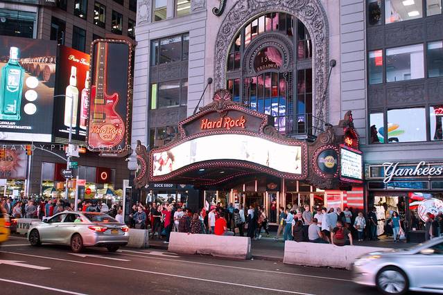 《纽约时报New York Times》早期在这里设立了总部大楼,因此有了时报广场这样的名字,久而久之人们也以时代广场来称呼这里。现在的时代广场成为了写字楼、剧院、音乐厅以及特色酒店的文化集中地,M&M’s豆、迪士尼商店、百老汇等等,都值得打卡。逛完不妨在Hard Rock Cafe美式音乐餐厅体验一顿美食。