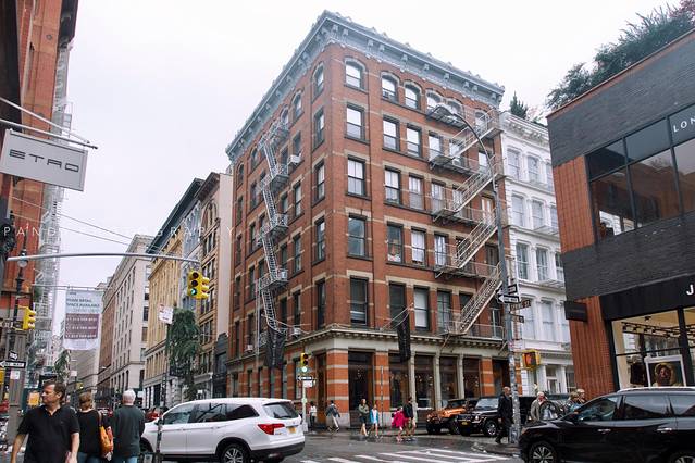 剧中提摩西穿行在的SOHO区,是纽约艺术与时尚先锋的聚集地。这么巧我去SOHO的那一天也是一个雨天。苏活区SOHO这个名字的来源,是因为它的地理位置South of Hoston Street。