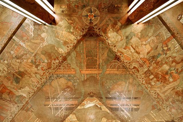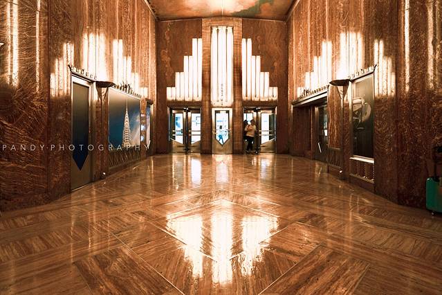克莱斯勒大厦高320米,共77层楼,金属鹰滴水嘴从大楼的四个角伸出,俯视着曼哈顿。遗憾的是,克莱斯勒大厦并不接待游客,不过大家可以在一楼进行参观,大理石和花岗岩铺设的地面和墙体、镶嵌着金属边框的壁画……大可回想当年门庭若市的奢华模样。