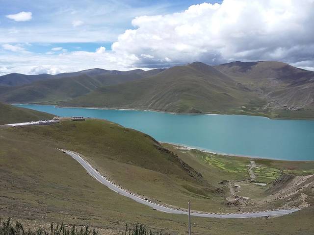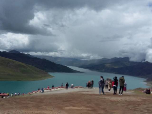 说羊湖是藏民的圣地,我其实就呆了十几分钟。C提前一天找了包车师傅,然后和两个同事一起,但是包车师傅都是那种急刹,刚开始就开的猛,然后中间会停一阵子,不出意外的我吐了。到羊湖的路口,因为司机不是藏民,还要求我们必须给司机买票120块。问如果去山南,只是经过羊湖呢?回复说经过也必须买票。我瞬间就觉得羊湖一点也不圣洁了,甚至脱口而出了一句“穷山恶水出刁民”。但终究来都来了,还是买了票,在路边拍了几张照片,海拔4000多,呼吸不是很畅快,还是没有真的走去湖边,也没有很遗恨。