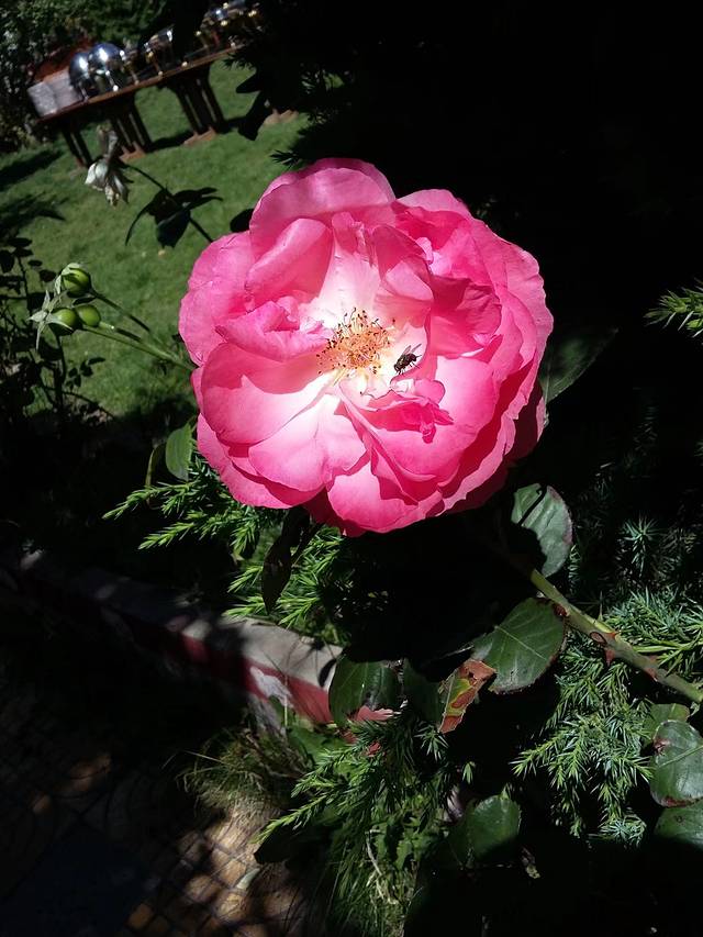 有蜘蛛网的猖狂 月季花的绽放 你们轻言细语沐浴阳光