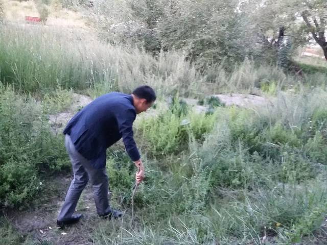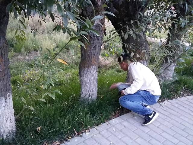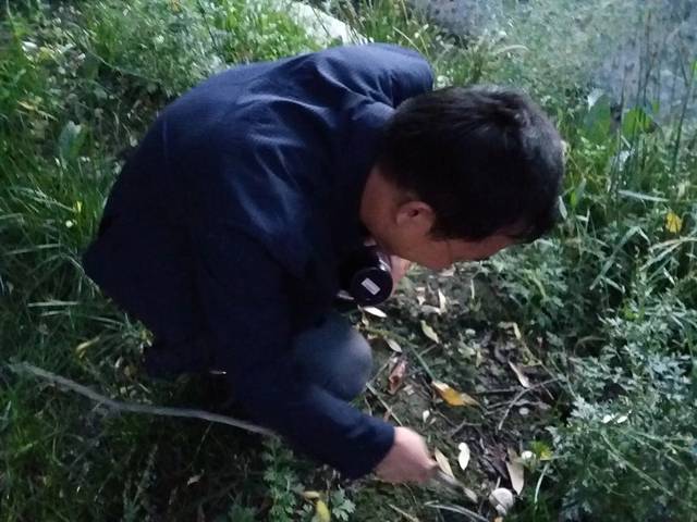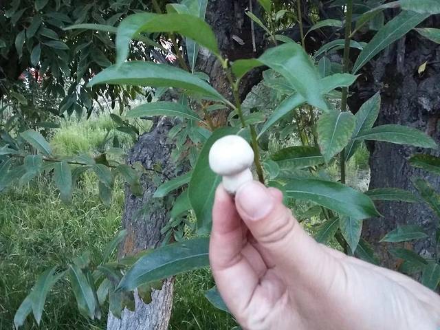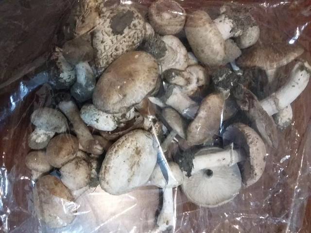 有一天傍晚偶遇到C 同事摘完蘑菇回来。