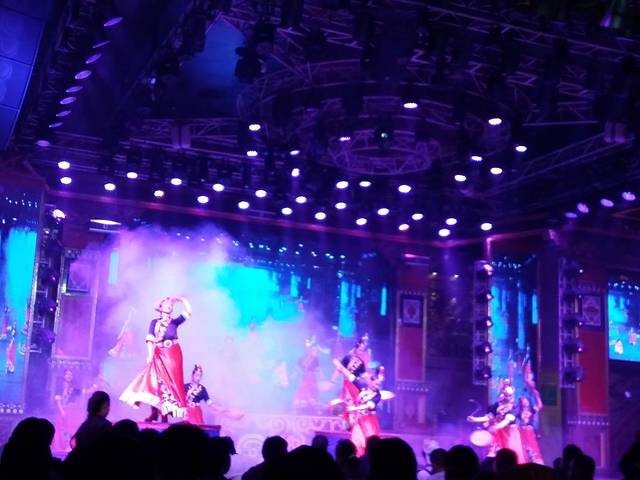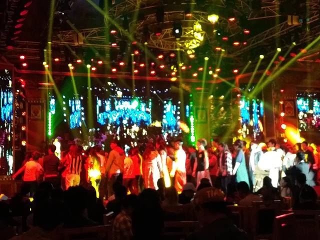 吃完鲜美的蘑菇宴,华灯初上,朗姆厅的金碧辉煌令离愁别绪一扫而光。载歌载舞的画面很美好,甚至有冲上台在跳锅庄的队伍浑水摸鱼了好几圈,要不是干冰太呛,都不舍得下来。那些献哈达的,点啤酒的,一桌桌,不知是过客还是归人?
