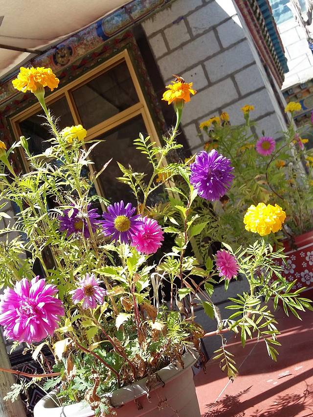 时间还早,中午吃了一顿很好吃的川菜,下午去山南算路过了一下。山南是松赞干布和文成公主生活过的地方,据说是藏文化的源头,有很多寺庙和漂亮的湖。但我们去到一个在山顶的寺庙门口,说女士不可进入,又悻悻然退回来。路上有一些嶙峋的山体,没有草木,满目苍凉。在一个有很多蜀葵的地方,看到一个寺庙,没什么人,在门口有个卖奶疙瘩的老奶奶,慈祥的示意我们尝尝。