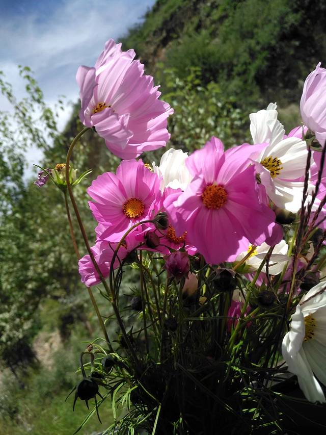 又赶上一场采蘑菇。浩浩荡荡的青年们,带着树杈,塑料袋在草丛、树下、花丛、水边四处灵活的穿梭,我在波斯菊里自拍,找各种黄的紫的野花,间或去看看蘑菇队的收获。