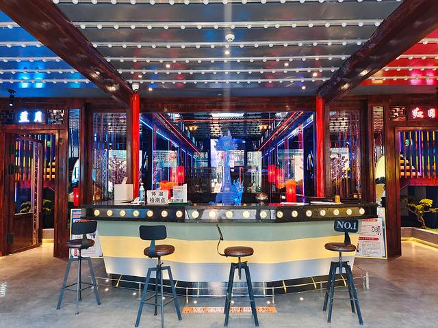 宫阙酒吧拥有最古色古香的装饰,走廊显眼的小灯笼韵味十足,天花板上悬挂着很多狮子挂件。恰一场盛大的战场,而带有中国风的桌子便是胜利的宴席,神秘中带着浓浓的诗意。