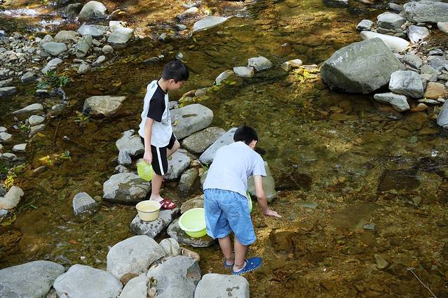 来建德旅行的第三天,我们前往沙墩头北坑源自然村寻找更多的清凉,行程从这一刻起多了些原生态的乡野情趣。随处可见的古树、野鸭、青石板小路,却不像古诗词中的那般凄凉,给人更多的是一种闲适和宁静。村子坐落在建德第一高峰“山羊坞尖”山脚,四周恬静幽雅,像极了世外桃源。跟着小鸭子们一起去小溪旁避暑,听着它们叽叽嘎嘎的叫声,掺杂着流水哗啦啦的声响。感觉很容易就混进了它们的生活圈,同伴们喜欢在小溪旁捕捉鱼虾,混在溪水中的鹅卵石透着冰凉,偶尔捡起几颗也能玩上半天。