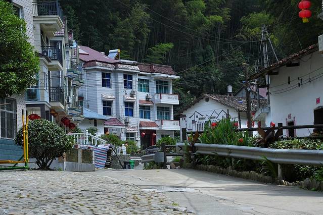 沿着碎石板路观赏着乡村的青竹翠林,白墙黑瓦,相比之前的豪迈激情此时更愿意做个贴近世俗,懂得品味乡野淡薄恬静的行者。这一刻心却是异常的平静,一股凉意在胸前回荡,很是自在。