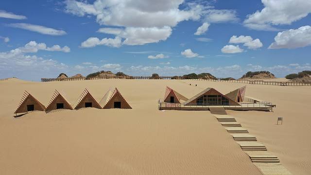 空中木栈道、沙漠之眼、天空之门、观景台、彩虹滑道、真人C S野战基地、沙漠极限运动和沙滩越野等