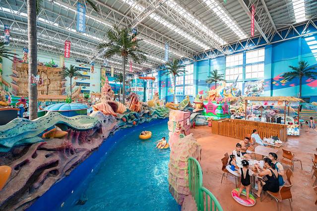 一票可以畅玩三园,室内乐园+室外乐园+海底温泉,如果白天太阳太晒或者下雨天,可以选择室内玩水,足足有2000平方米,以海底幻境为主题,五彩斑斓,小朋友么都喜欢玩清凉的水雾迷城和欢乐的水球大战,每个人脸上都洋溢着童年的欢乐,玩到直呼过瘾~