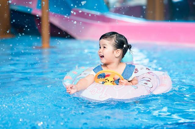 大小各异的泡池就很适合一家人一起玩耍,小糖豆一个人玩的不亦乐乎~