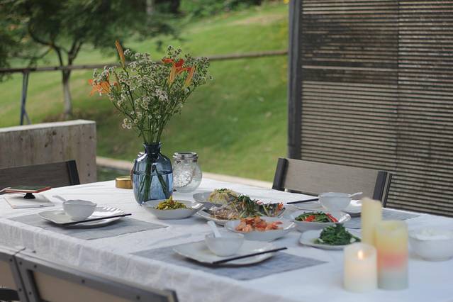 不能错过的不只是酒,还有可口又抚胃的农家菜。我们去的那天,民宿阿姨特意去山里拔了竹笋,于是晚餐我们品尝到了笋干百叶包塞肉、白灼虾、清真鱼、蛋黄焗南瓜,还有民宿主自家种的若干时蔬。真的好鲜~清淡的口味也很合我的心意。