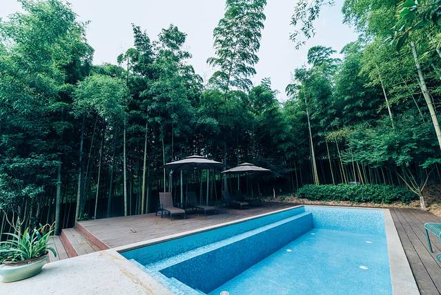 天气太热的时候,不妨到民宿的后山去,那里背靠一大片竹林,夏日凉风吹来,给人带来阵阵清爽。山林间鸟鸣不断,泳池在日头下泛着粼粼波光,“跳下去吧!”,去泳池做一条不被定义的鱼,像年轻人那样肆意地挥洒青春!谁能拒绝夏日的竹林泳池呢?