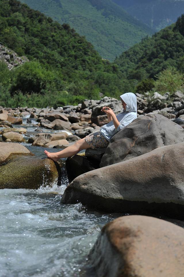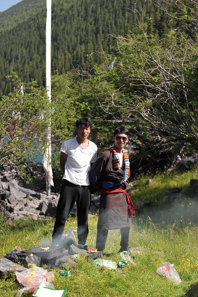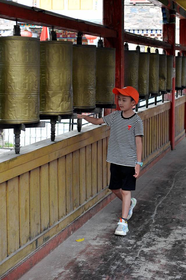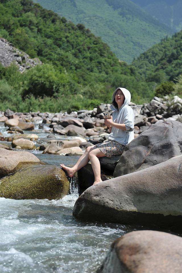 休整了一晚上,娃爹虽然依然觉得脚有点酸痛,还是决定可以前往金川情人海,248国道走到松岗就开始堵车,堵了很长的队伍了,有些川U车还是逆行住前冲,明明车跟得很紧,有些川U车弯道上也要超车,看着就吓人。也有些川U车不急不躁地排着队,一步步往前挪。因为油快完了,只能绕点道先去观音桥加油,正好也到午饭的点了,就到镇上吃晚饭。吃了饭沿太阳河路往情人海赶,看到路边的太阳河有些地段很适合玩水,就找了个方便停车的地方,先去踩了会水,水有点冰,但可以下脚倒也还好,石头倒是很烫,拍好照赶到情人海,已经是下午五点多了。景区无门票,人很少,也很凉快,几个藏族小伙儿在里面搭了帐篷聚着,他们很热情得招呼我家娃去一起坐,娃很害羞,他们一时兴起就唱了起来,慢慢地也跳起了舞,这不比某些收费景点香多啦,欣赏到纯正藏家歌舞表演,我是很满足的。娃和老妈不想再走路了,于是我和娃爹在景区栈道和石板路上继续拍照片。草甸上的野花正盛,下午的阳光闪在脸上身上,是幸福的感觉。水里还有鱼儿跳跃,真觉得这路虽然难走,却也不枉此行了。晚上本想就住情人海旁边的藏民家,但没找到合适的,还是决定去观音桥镇上住。