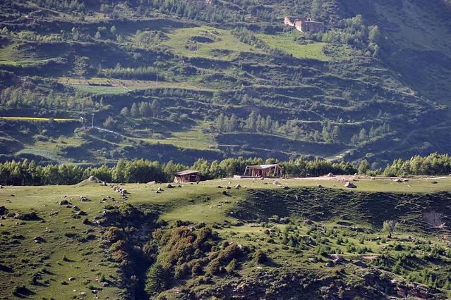 土司官寨全价票是60,现在半价优惠是30,我们没去。今天准备认真再逛逛西索名居,村子里很多客栈和农家乐的招牌,但真正营业的不多。很清幽,只看到几个老年人,几个小孩儿,中青年没怎么见到。里面还有一座丹达轮寺,距今已有600多年的历史,寺内壁画很罕见,但我们无缘得见了。