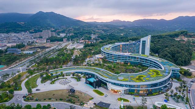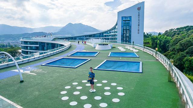 温州泰顺亿联开元名都大酒店整体呈现蛇形,在建造时就有一个非常好的灵感,那就是卧龙匍匐。住这个酒店一大这点,也是非常值得去的地方,那就是星光大道,这是我国第一个直接能从地面走上屋顶的500米长网红坡屋顶圣地。