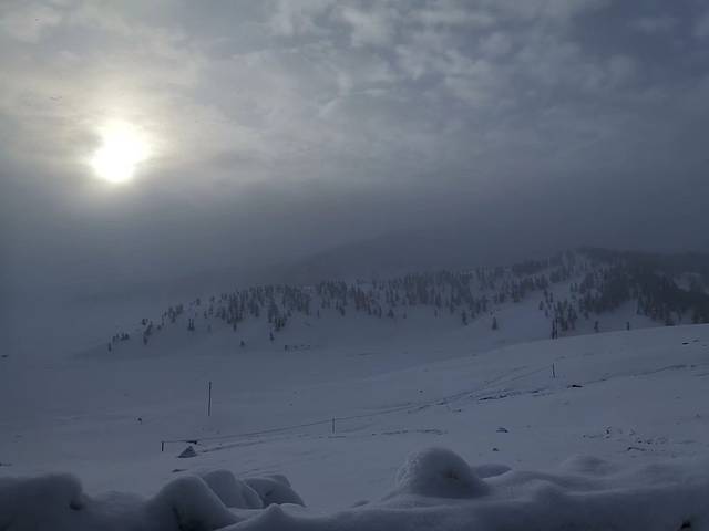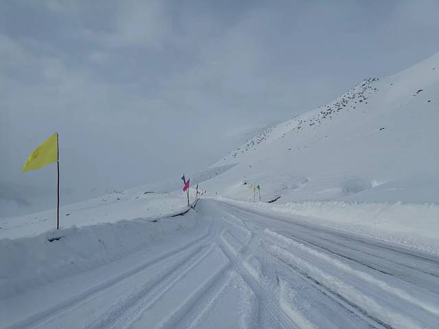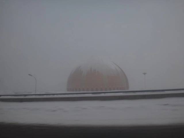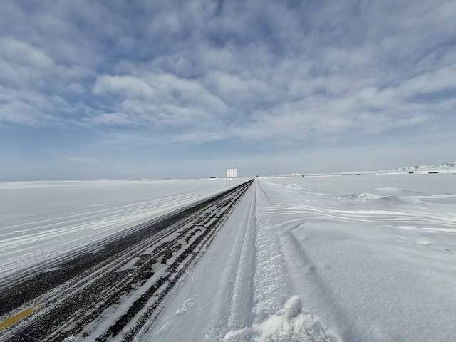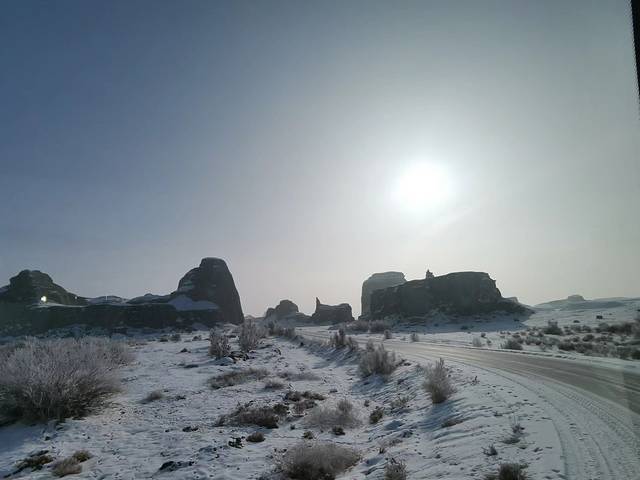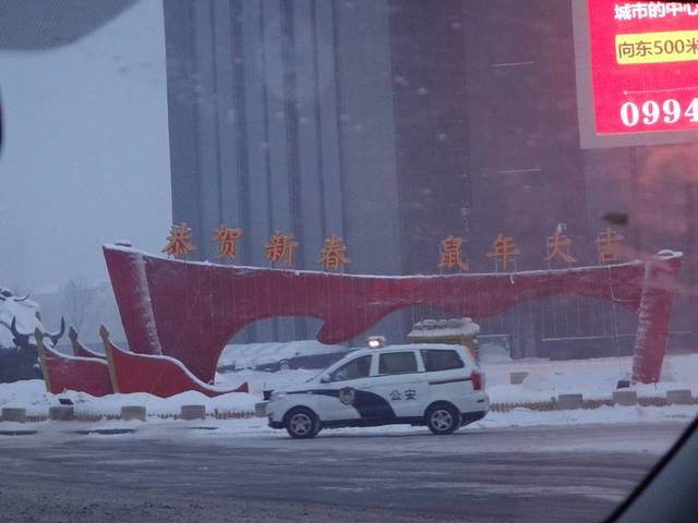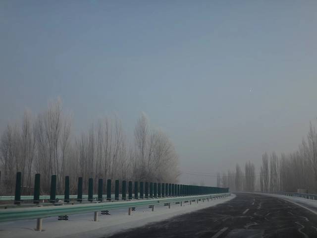 乌鲁木齐到赛里木湖有点远,车程一般要5-6小时,计划是下午2点到景区看冰泡泡。不幸的是因为下雪,所有的高速公路都封了,天色也是灰灰的,太阳被藏得严严实实。司机也不好意思停,各种绕圈圈,路上看见乌鲁木齐大剧院、昌吉、乌苏、呼图壁一路都是白茫茫,下午3点前才上了高速,一路狂奔。