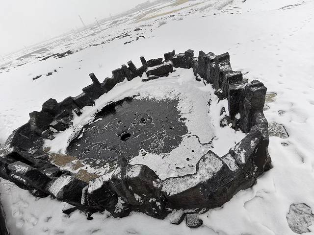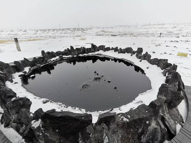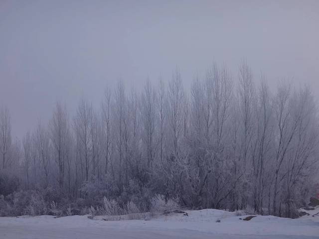 9点多,天蒙蒙亮,窗台外一层薄薄的雪。司机去加油,在加油站发现宛如精灵的雾凇,一排排肃然静立,格外欣喜。一路上能看见很多磕头机或单或群地机械动作,空气中都弥漫着厚重的油味。到黑油山,雪下大了一些,公园很空旷,进去没几步路脸开始麻木。好几个黑油池都凝固了,只有库尔班大叔和毛驴雕像那的池子里能肉眼看见冒泡泡。三个人一起蹦跶才能听见声音,一伙人幼稚的蹦蹦跳跳,转完司机大发慈悲的捎去了大油泡打卡。没有晴天,所以不锈钢做的大油泡美的不明显。
