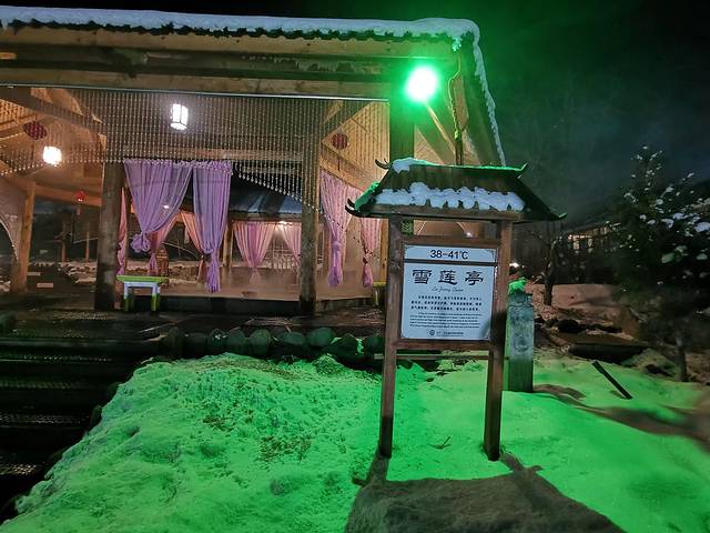 晚上到了天池附近的五江温泉城,室内有干蒸和搓澡的,室外是雪地里的露天温泉池,各种大大小小的池子,吃的玩的一应俱全。