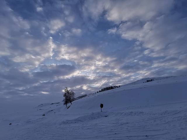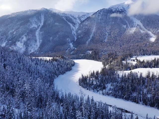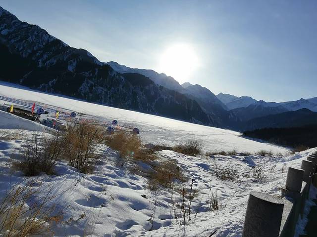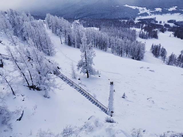观鱼台和西藏的羊湖一样,都是冰渍湖,所以无论形状还是颜色,都很接近,但其他季节是需要2日票才能去那边的,我觉得算喀纳斯景区的精华,错过会很遗憾。冬天只能坐雪地摩托加步行,雪地摩托是另外的价钱,260大洋,雪地摩托到半山腰,然后下来顺着鞋印找台阶,有一条上去的路封了,另一条上去的台阶旁有两片很美的树林,银装素裹的。在乌鸦的叫声里跌跌撞撞,因为景区的工作人员怕游客冷,一直叫我穿这个戴那个,结果我太笨重没有爬上顶,嗷.......