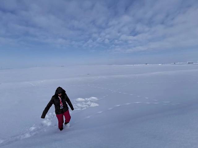 白茫茫一片,差点雪盲,下雪路滑,后脑勺着地摔了个四脚朝天,回来还迷路了,呜呜......