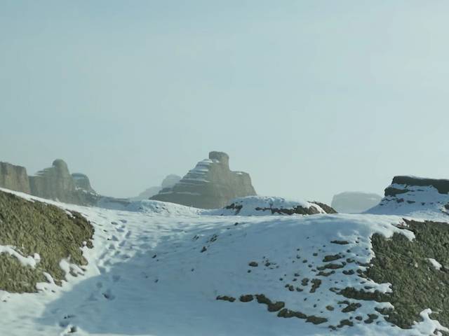 淡季还是有忧伤的。乌尔禾魔鬼城等交通车差不多1个小时,也就4个游客,因为自己逛一圈赶不及去酒店,只能干等。白雪覆盖下纹路偏土黄色,即使天空蔚蓝如洗,依然不太抓人。对电影毫无兴致,单纯就着讲解欣赏了一下各种形状,出来以后发现在外面绕一圈色彩反而更鲜明一些。