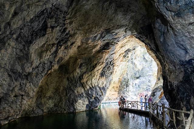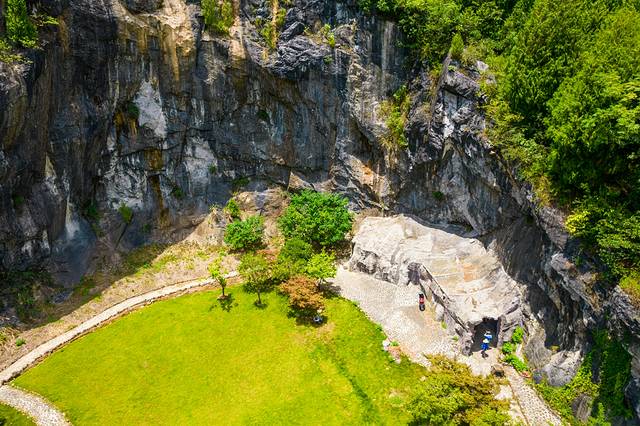 这是一个网红村,不仅有油画般的风景,还有一个网红“无底洞”老虎洞。原本这里是一大片废旧矿山,但是聪明又勤劳的石头匠人们把石头变成了盆景,还打造了石景公园。沿着矿洞,走进网红“无底洞”,十分清凉。抬头可以看见蓝天白云,低头可以看见清澈潭水,十分有趣。听说,后期这里还会打造网红民宿,让人期待。