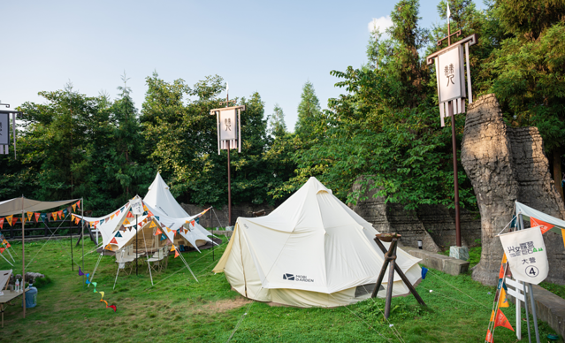 沿着山路再走个几分钟,藏在石林群内的露营基地便全部展现在我们眼前,天幕、帐篷、桌椅…这些露营设备一应俱全,还能看见有很多僰族元素的小装饰,鲜艳的颜色足够吸引眼球~