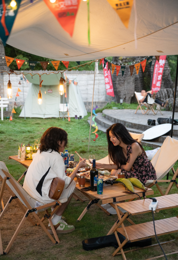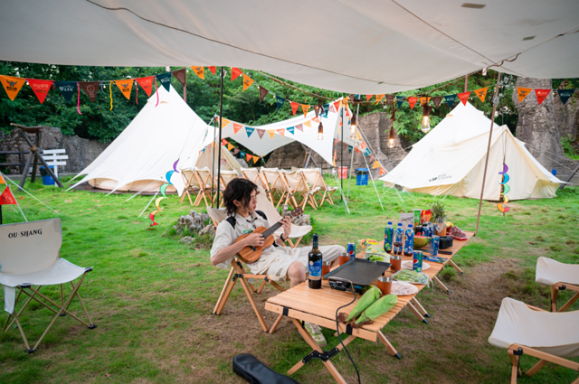 就和朋友在天幕下相对而坐,任午后的阳光肆意洒在身上,吹着惬意的山风,弹着尤克里里聊着天,就这样惬意的露营趴,连空气中都弥漫着慵懒的气息,简直不要太爽!