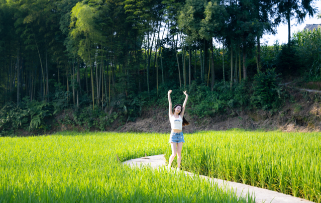 对了,白天还可以去旁边的稻田拍拍美照,绿意盎然的稻田油画氛围感十足,深吸一口空气中都是淡淡的清香,漫步其中,不经意间就穿梭到了小时候的夏日回忆…