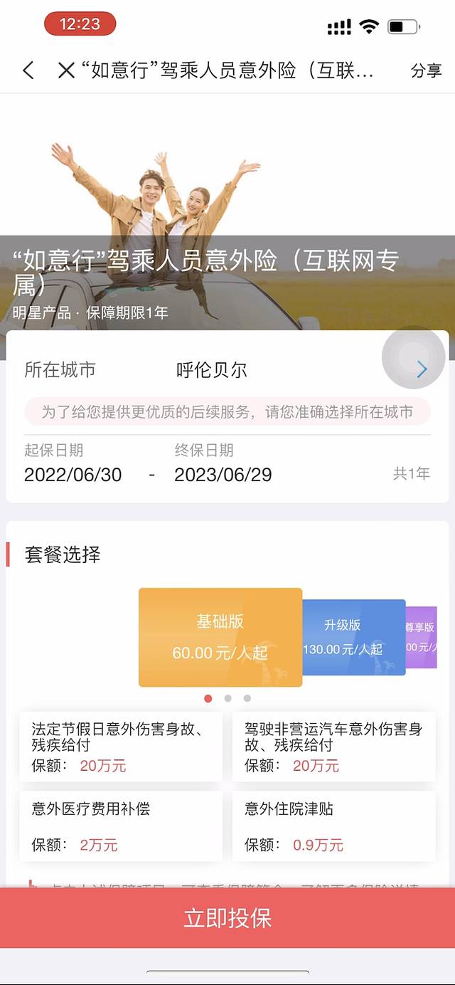 对于爱自驾旅行的我,习惯在出发前买份保险,因为车险也是上的人保,所以直接在手机APP里下单,快捷方便,同时也安全多了一份保障。