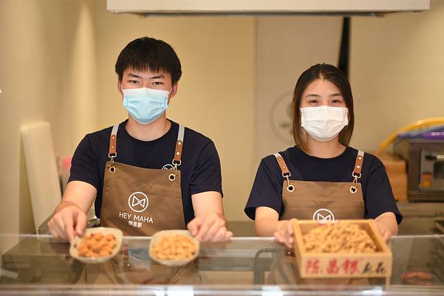 一间现代简约风格的麻花小店,面积不大,店内的麻花基本都是现做现售