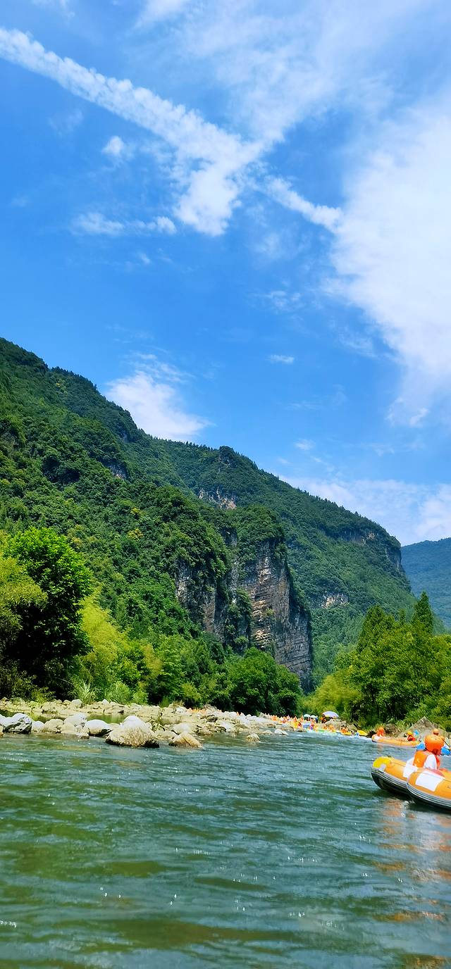 有一说一,漂流水道一路的环境是真的好,高山奇石,水清见低,不过有点微凉,但还算是清爽宜人。